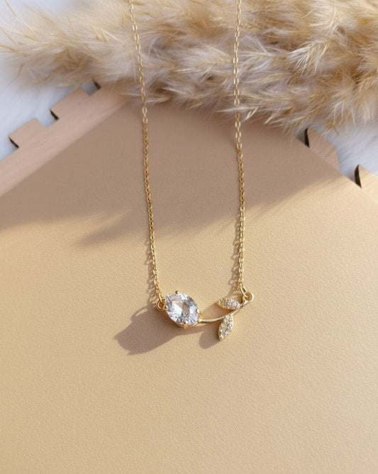 Rose Pendant Necklace with Red Gemstone & Sparkling Leaves