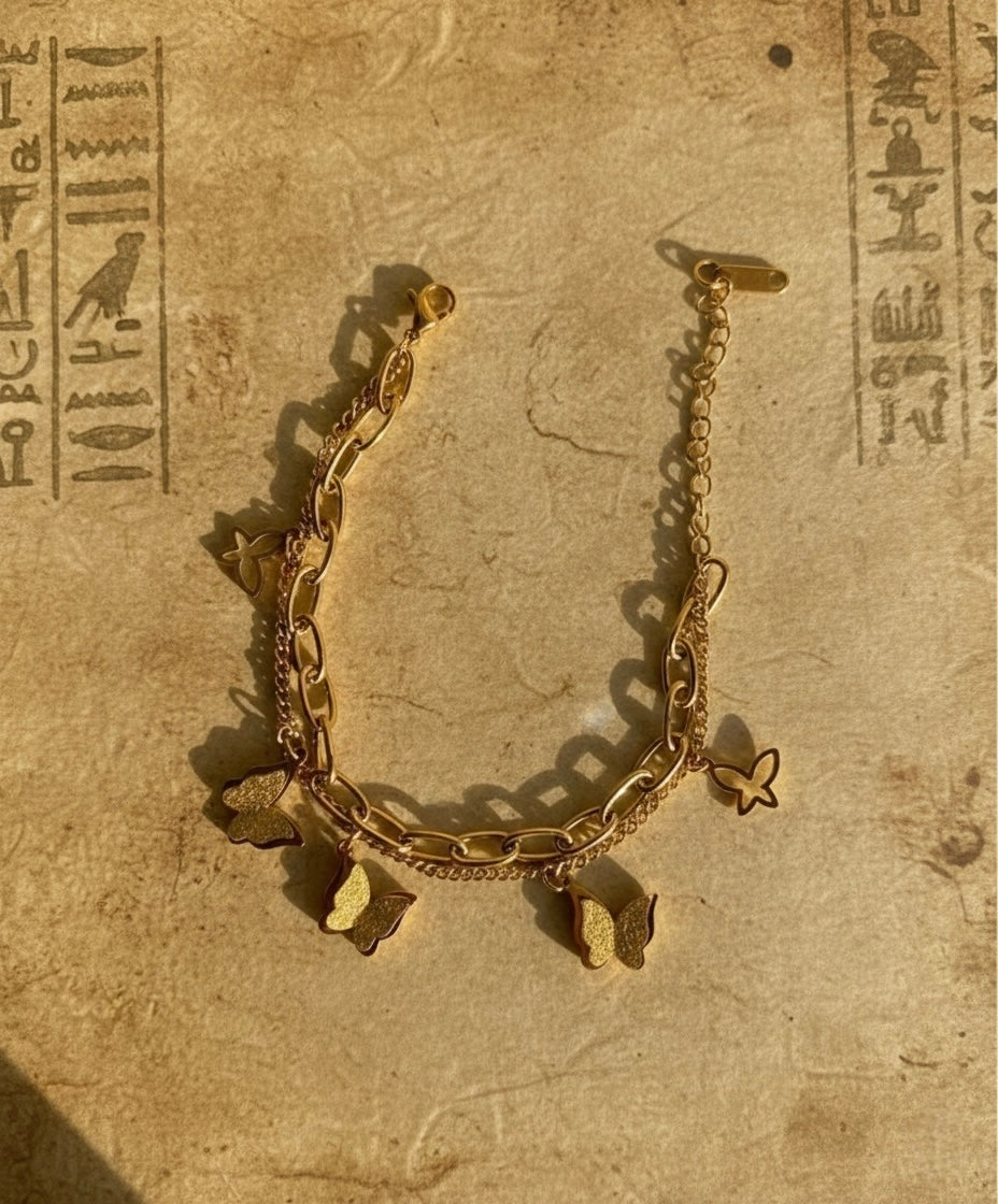 Elegant Butterfly Charm Double-Layer Bracelet